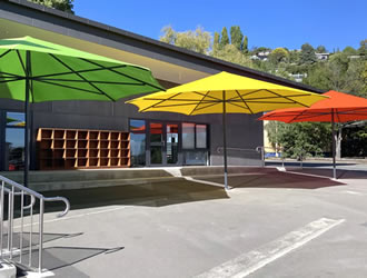 - Our umbrellas are available in square and octagonal models with stainless steel components for durability in centre pole, cantilever and rotating designs.